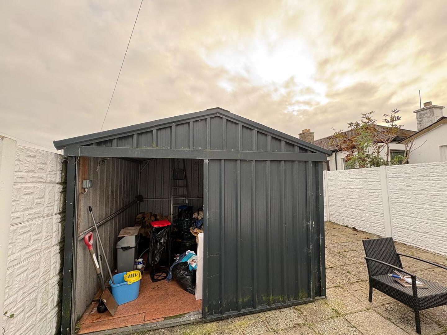 Gardens: Enclosed front & rear gardens with side access to patio area and Steel tech garden shed.