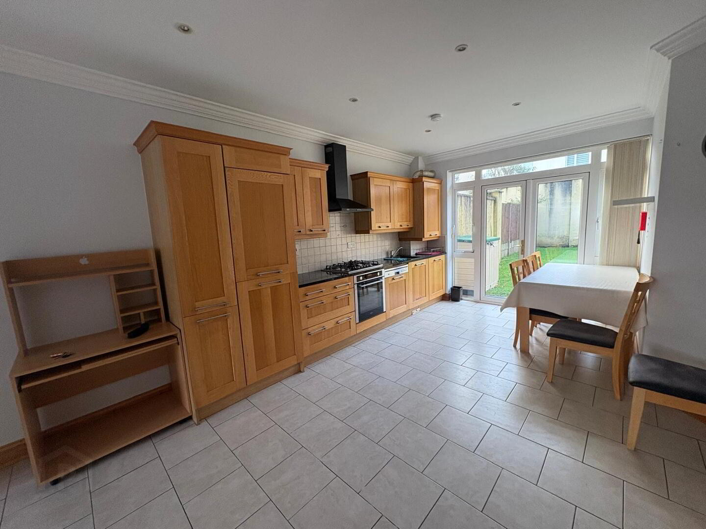 Tiled floor, fitted kitchen, recessed lighting, French doors to rear, cornicing