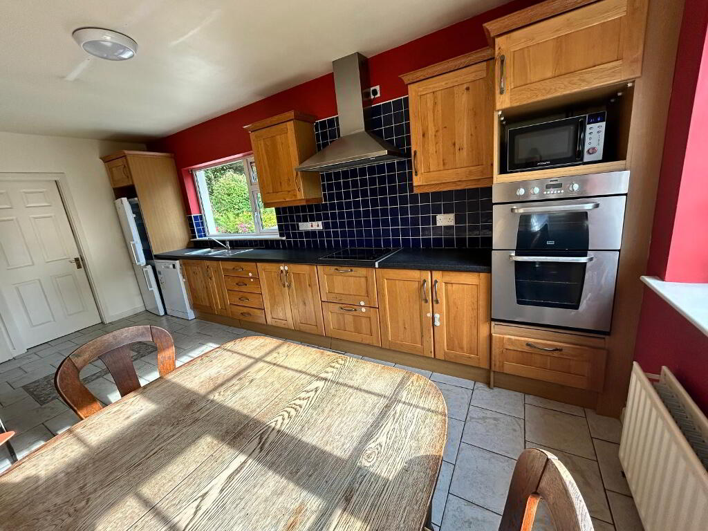 Kitchen/Dining: 3.1m x 6m, tiled flooring & splashback, solid oak kitchen units.