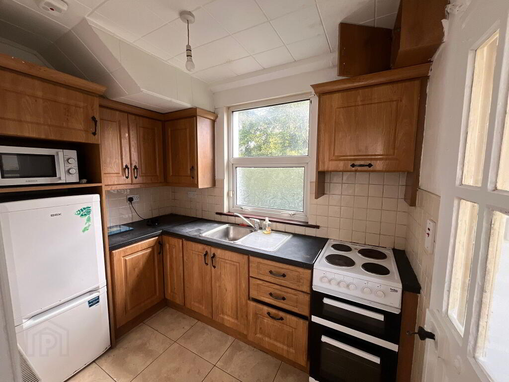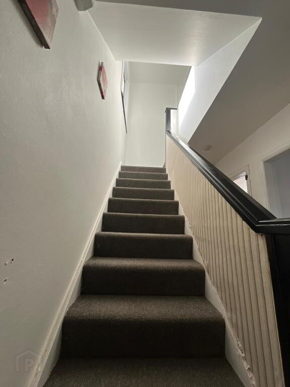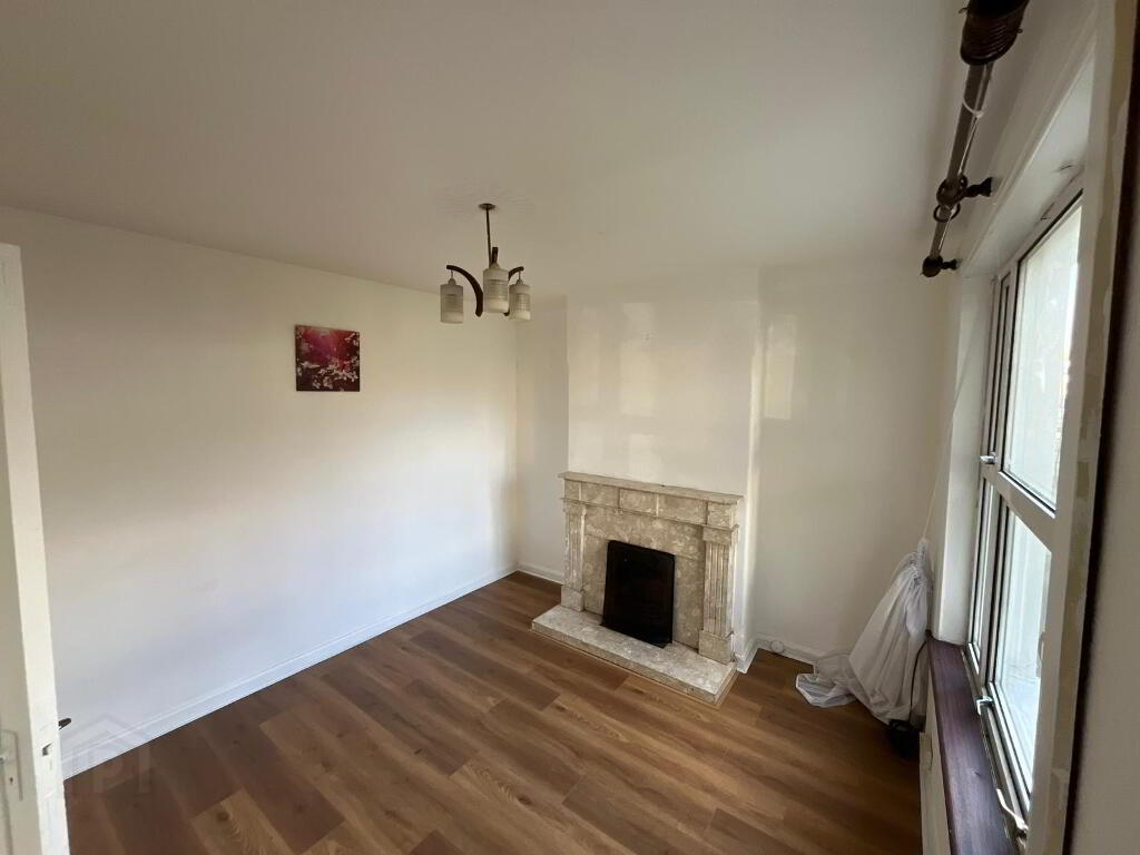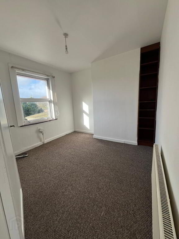 Bathroom: 2.3m x 2.1m, fully tiled with bath, toilet & whb, hot press off.