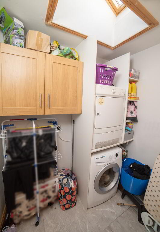 Plumbed for washing machine, dryer and sink. Porcelain tiled floor, Velux window