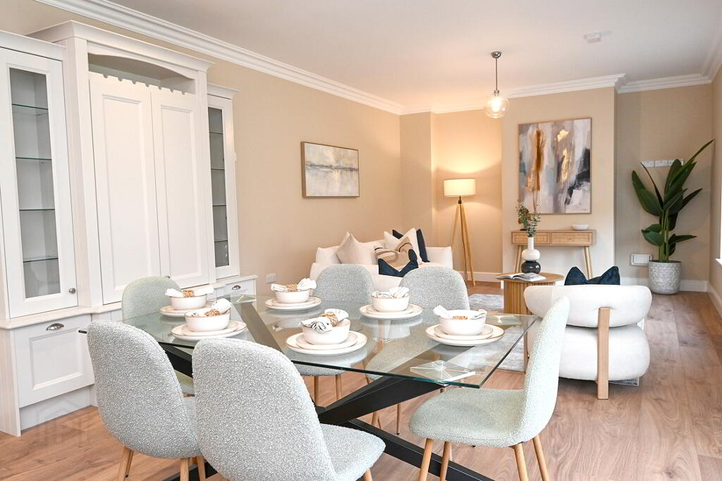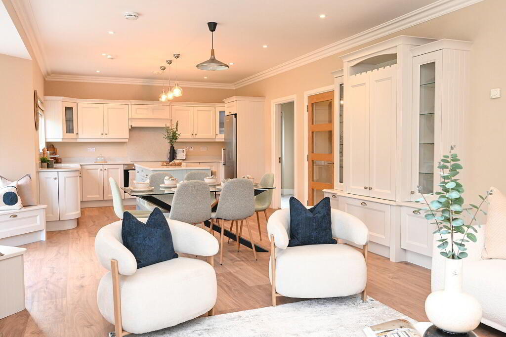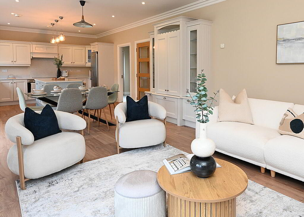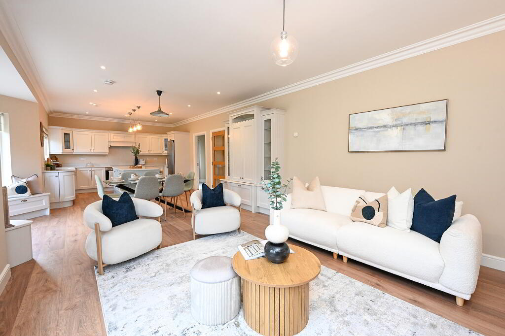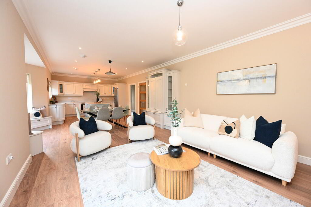 Open Plan Kitchen/Living/Diningroom: 5.10m x 11.05m fully fitted Celtic Interior Farrow & Ball hand painted kitchen, feature Larder Style Dresser, all finished in Top Grade Silestone worktops and splashback. Quality fitted appliances, Double Oven, Induction hob, Fridge and Integrated Dishwasher remain in the sale.