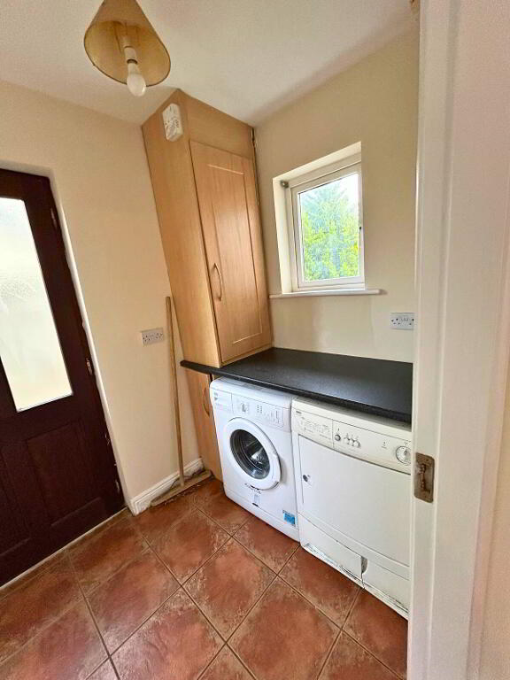 Utility: 2.907m x 1.587m, door to side, tiled floor, plumbed for washing machine and space for the dryer