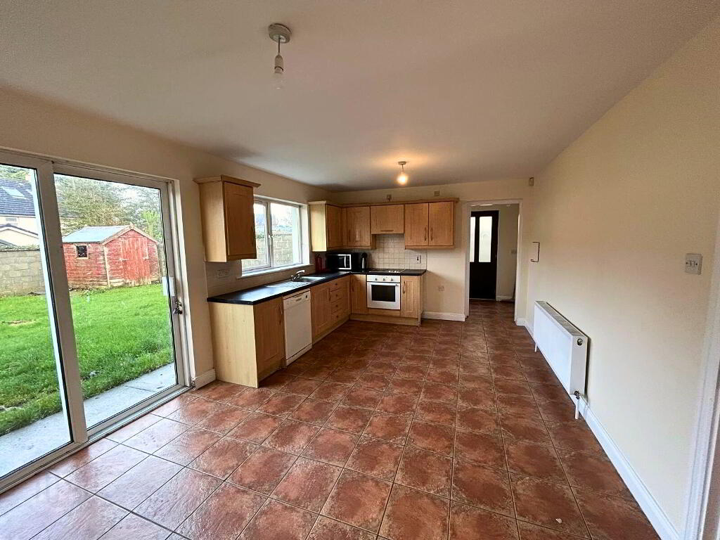 Kitchen/Dining: 3.504m x 5.772m, fully fitted kitchen, plumbed for dishwasher, tiled floor and splash back, patio door to rear garden