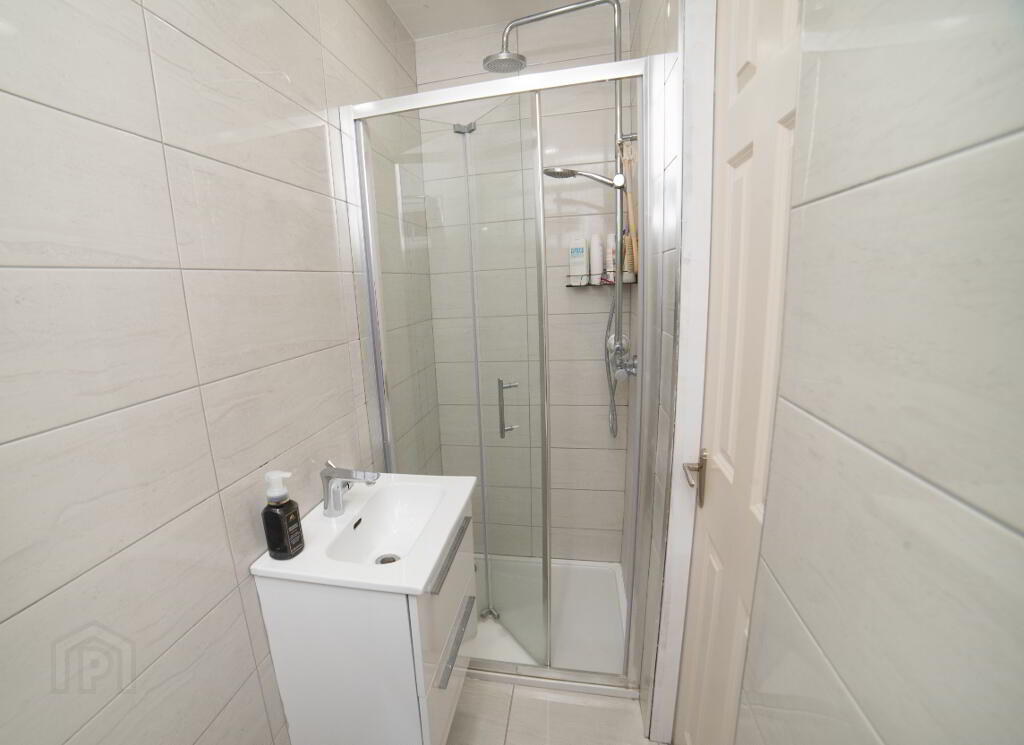 En-suite: 0.86 x 2.63 tiled wall & floor with feature vanity area and power shower