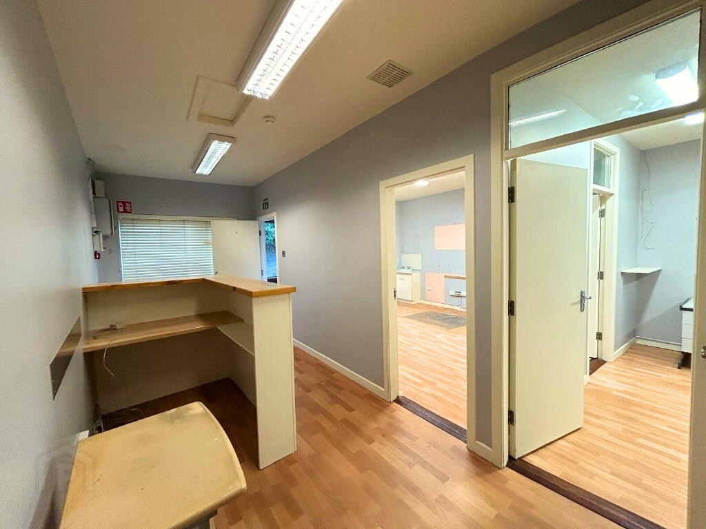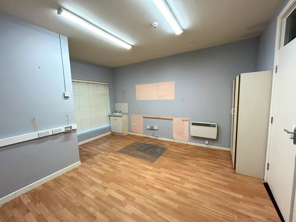 The accommodation comprises an entrance porch, reception area, two interconnecting office rooms, kitchenette, and WC.