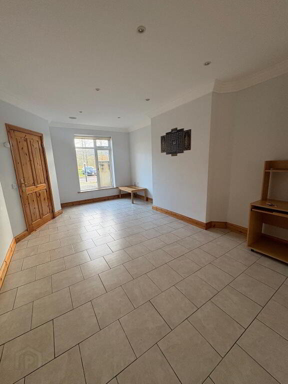Tiled floor, fitted kitchen, recessed lighting, French doors to rear, cornicing