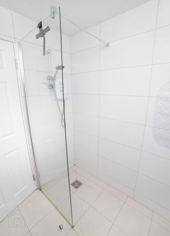 Showerroom: 5’10” ( 1.78m ) x 5’3” ( 1.60m ) modern stylish tiling to wall and floor, Triton T80 Shower