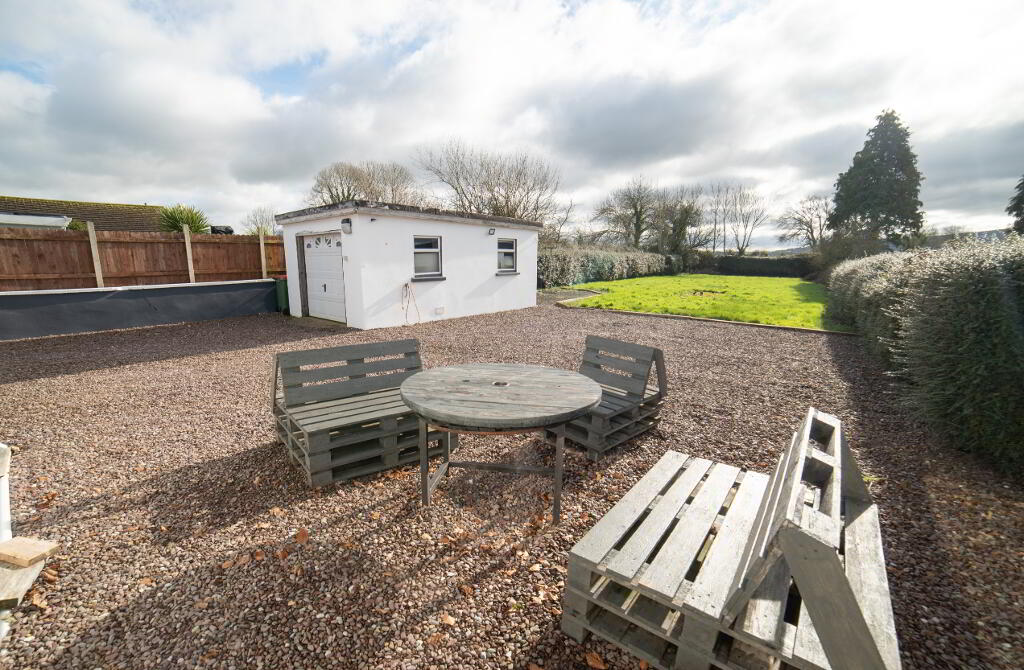 Garage: 11’0” ( 3.37m ) x 18’11” ( 5.77) with power. Large garden to the rear currently laid out in a lawn with side access from the front of the property.