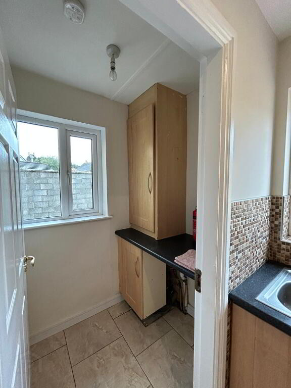 Plumbed for washing machine, tiled floor, and door to rear garden.