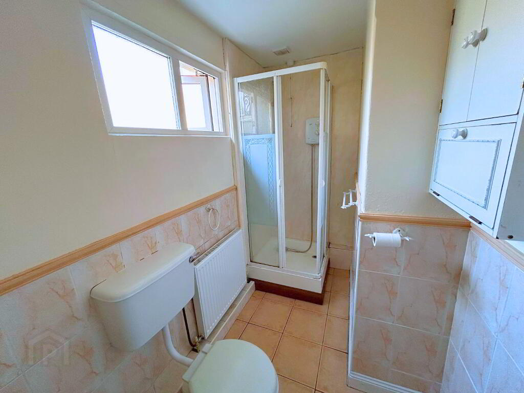 Bathroom: 4'11" ( 1.52m )x 8'10" ( 2.71m) tiled part wall & floor with electric shower
